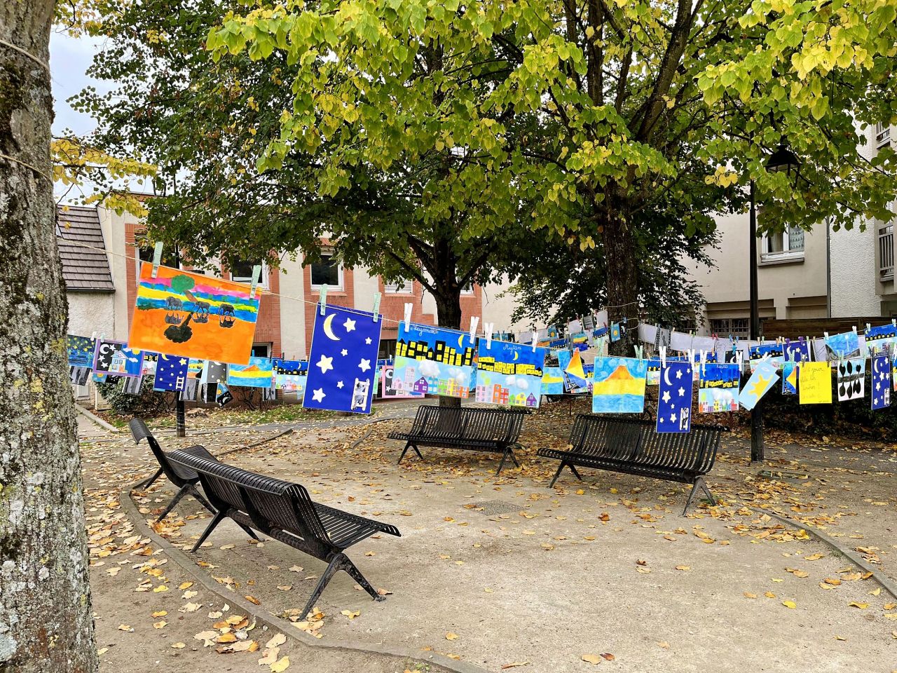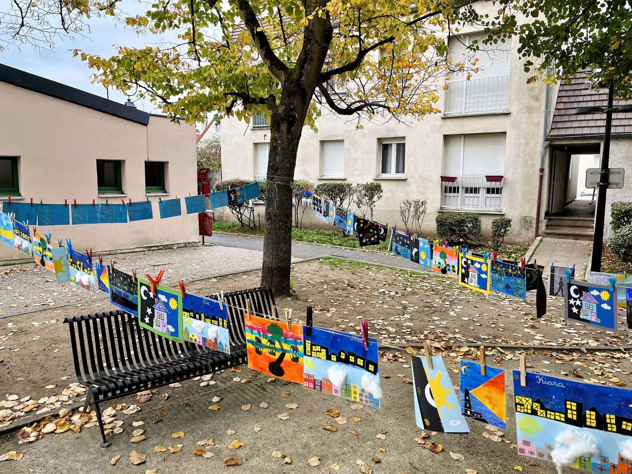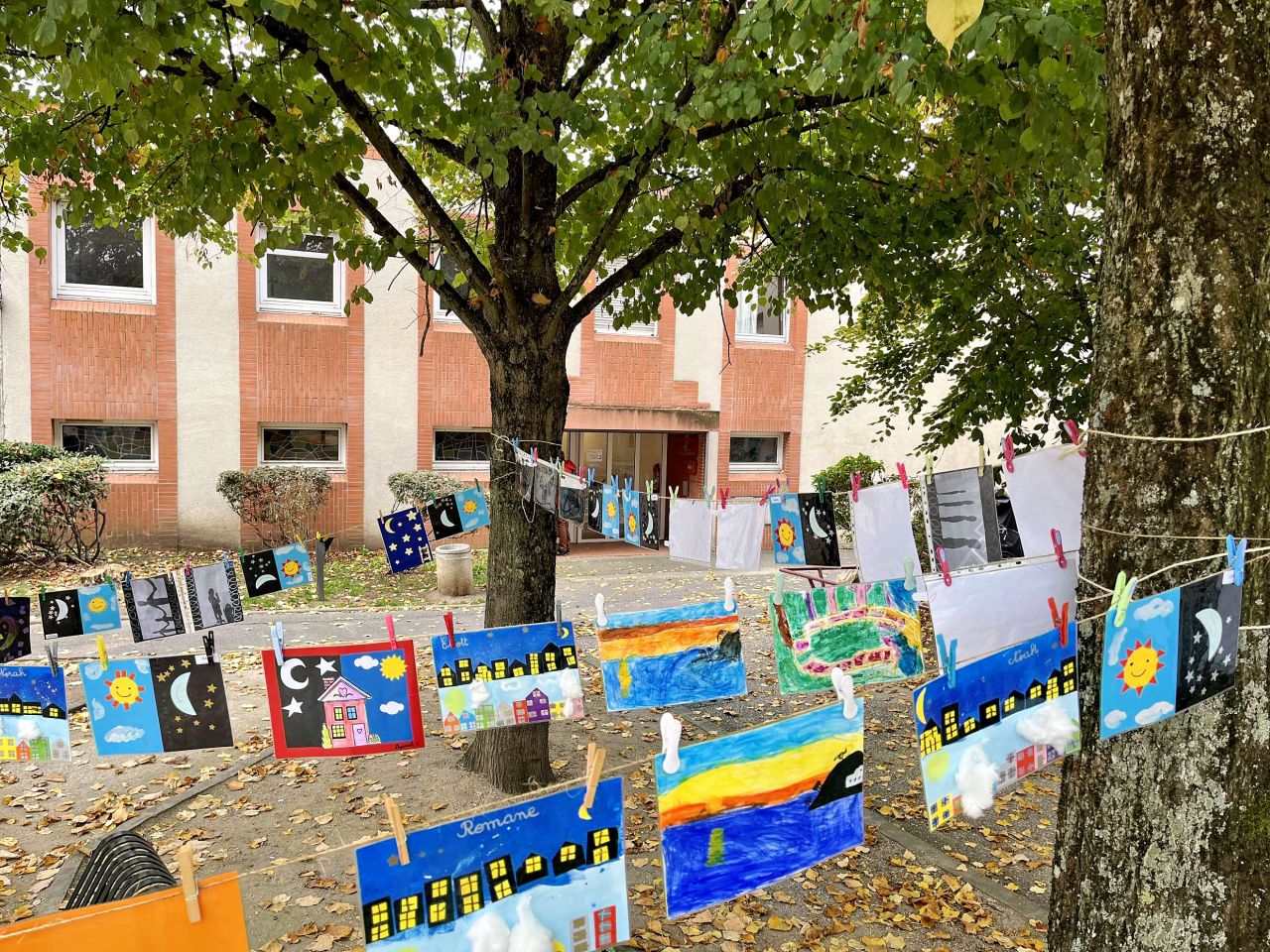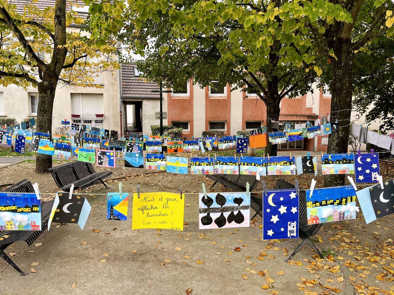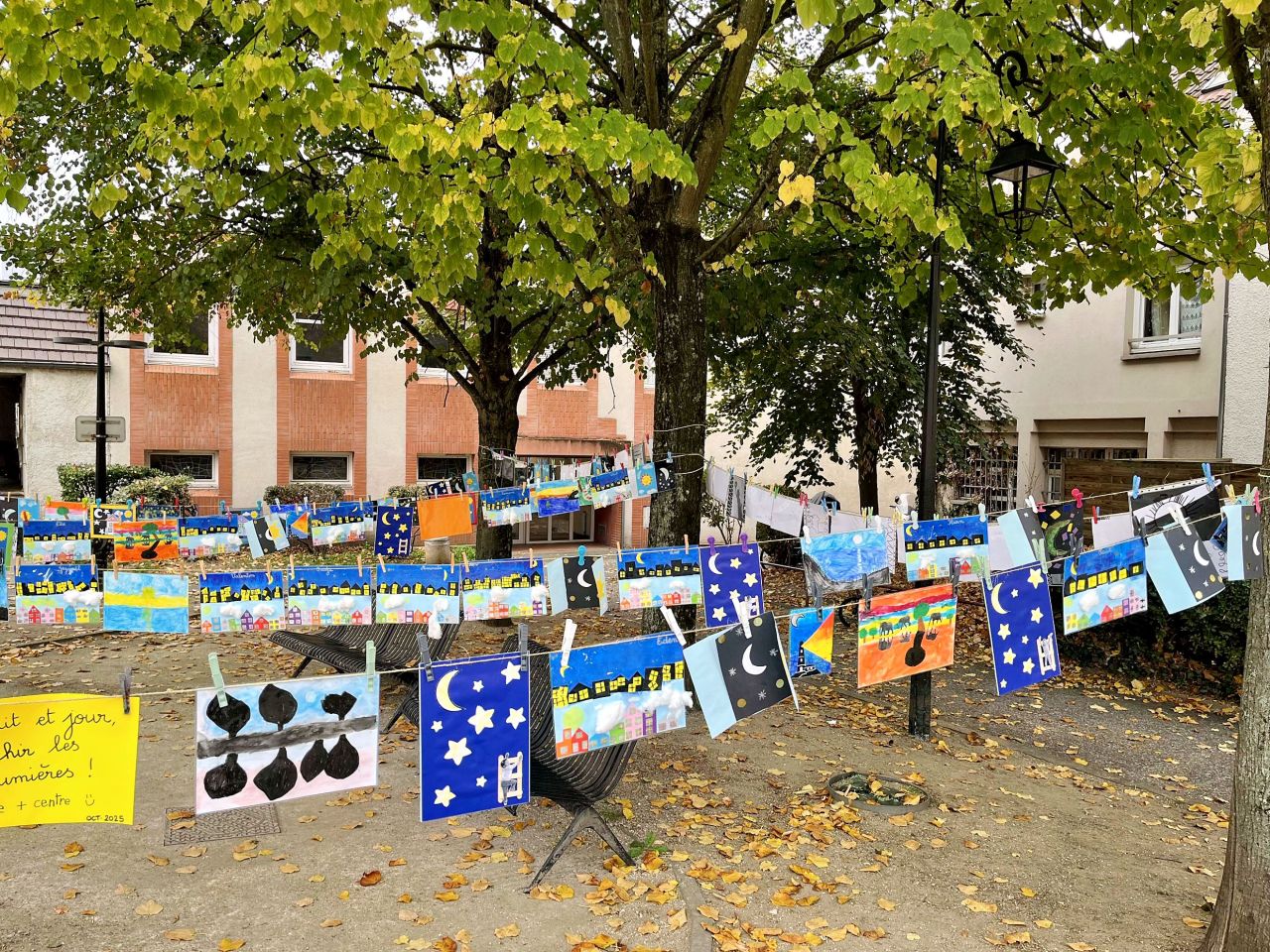 Comme chaque année, nous avons participé à la grande lessive du mois d'octobre dont le thème était "Nuit et jour, réfléchir les lumières".